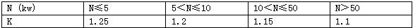 從性能表中可以查到泵的軸功率N,配套電機(jī)功率Nm≥K×N,K值按下表: